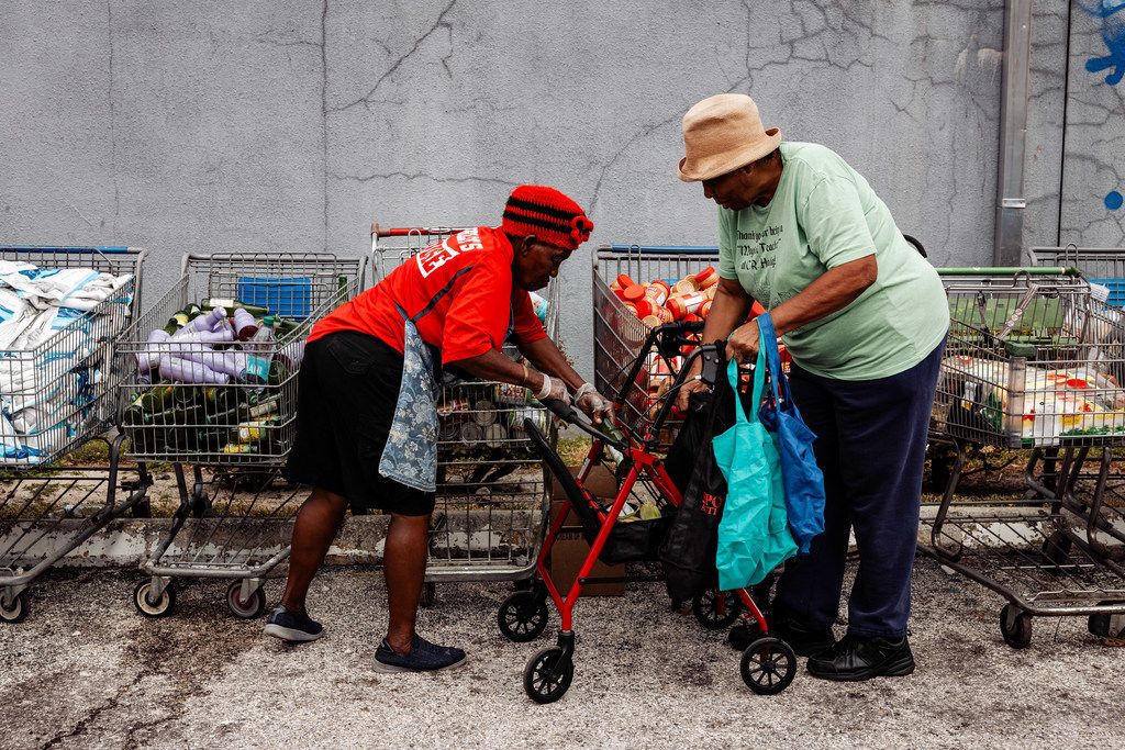 当地时间2025年11月4日,美国佛罗里达州迈阿密,Curley's House食品银行,一名居民搬运玉米。