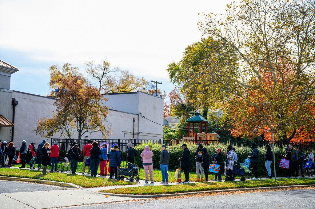 当地时间2025年11月4日,美国马里兰州海厄茨维尔,被停职的联邦工作人员在首都地区食品银行分发点排队。美国总统唐纳德·特朗普当天在社交媒体上发帖称,他不会在政府重新开门前提供补充营养援助计划(SNAP)福利,这使得该计划的命运更加不明朗。