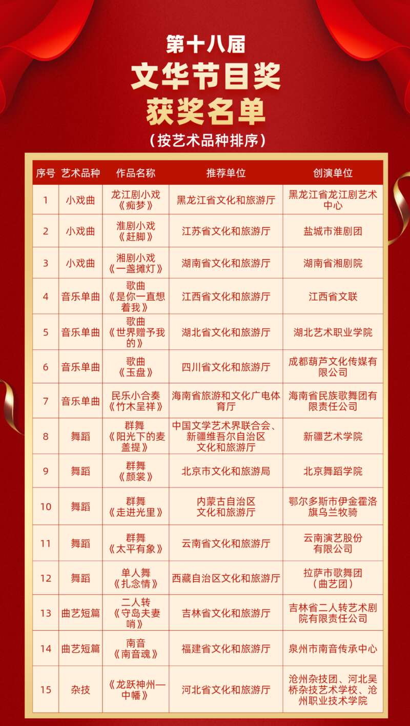 中国艺术节是广大人民群众共享的艺术盛会,文华奖是我国舞台艺术领域的政府最高奖,每三年评选一次,代表着中国舞台艺术发展的最高成就,激励优秀舞台艺术作品创作、推动艺术人才成长。