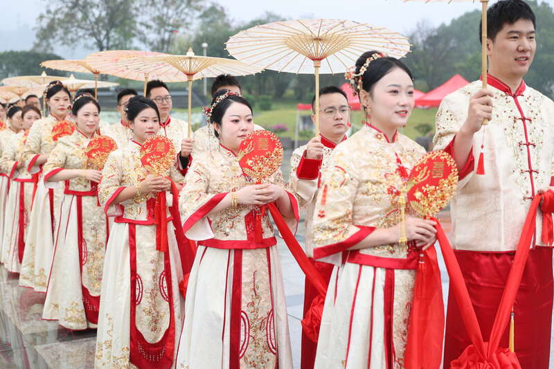 中国青年报客户端武汉11月6日电(王芳 中青报·中青网记者 朱娟娟)11月6日,湖北宜昌三峡大坝截流纪念园内洋溢着喜庆氛围,“爱满长江 情定宜昌”2025全国青年三峡大坝集体婚礼在此举行。24对来自全国各地、不同行业的新人齐聚大坝之畔,以集体婚礼的形式参加中华传统婚典,开启幸福新篇章。