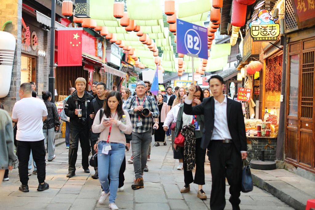 2025年11月5日,重庆沙坪坝区磁器口古镇,2025重庆国际旅行商大会踩线团实地参观考察。
