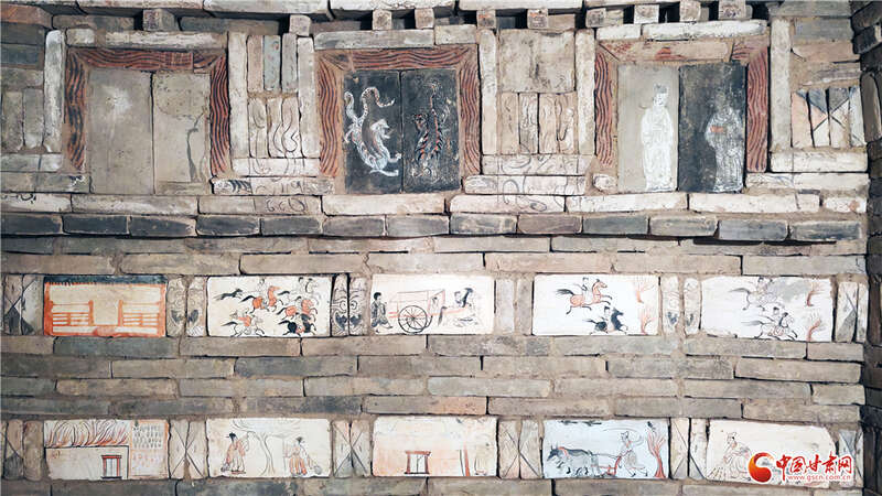 高台县博物馆珍藏的魏晋壁画砖,以简洁灵动的笔触勾勒出农牧耕作、车马出行、歌舞宴乐等生活场景,展现了河西先民真实的生活图景。嘉峪关新城魏晋壁画墓中的《驿使图》,再现了古代丝路驿传系统的高效运作,成为中国邮政的标志性图像。