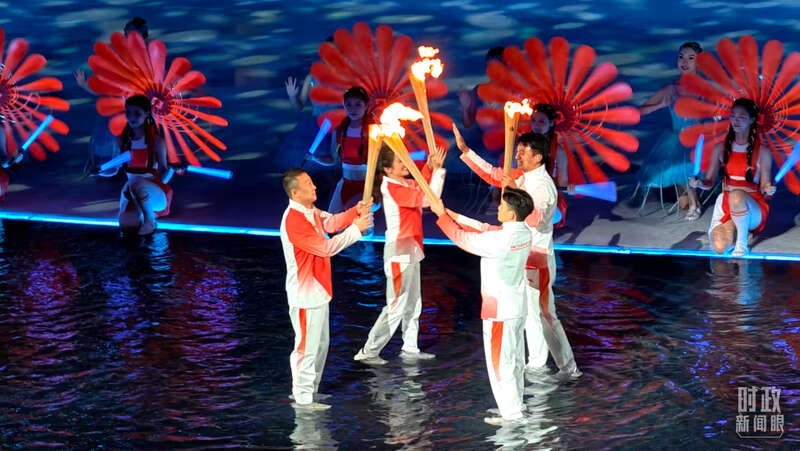 △第十五届全运会主火炬点燃环节。(总台央视记者范一鸣、蒋硕拍摄)