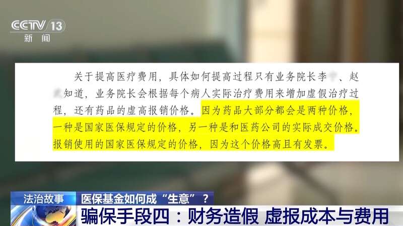 大同市中级人民法院执行一庭庭长 郑翔:有的患者是病症较轻,仅仅需要基础的检查和治疗。在这种情况下,医院会安排医生或者医生助理通过修改病历,增加住院时间,或者开具一些名贵的药品和检查治疗费用,从而把住院的费用提高到国家医保报销的最高标准。