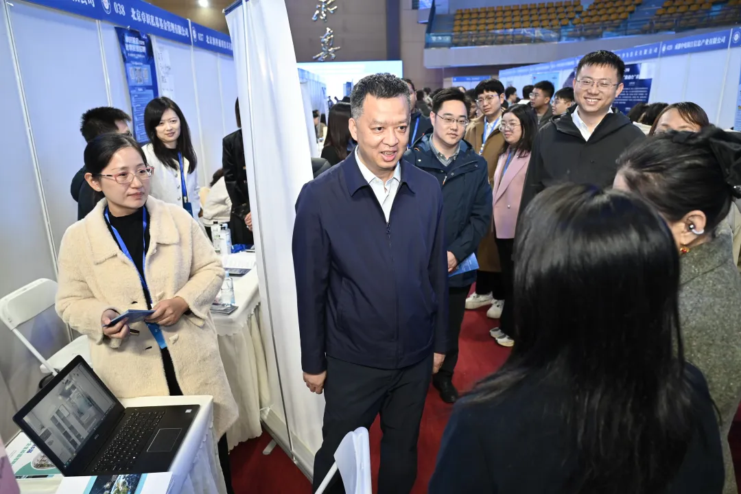 校党委副书记、副校长李会勇来到清水河校区双选会现场,对各用人单位长期以来给予学校事业发展及毕业生就业工作的支持表示感谢。他在走访中了解企业招聘需求和行业发展趋势,表示学校始终坚持以服务国家战略为导向、以学生成长为中心,不断优化人才培养体系,希望与广大企业建立更稳定更深入的合作关系,共同助力毕业生实现更高质量就业。