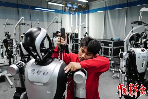 同样是00后的尚明君,现在在训练场负责机器人的维修工作。从焦作工贸职业学院计算机应用技术专业毕业后,他去上海做过宠物销售,但觉得那份工作收入不够稳定。后来他在网上应聘了兼职机器人“数采员”,一步步进入这个行业。在他看来,机器人现在是热门,这个产业更是“风口”,他准备在这个领域深耕下去,积累经验。尚明君认为,机器人在快速迭代,掌握更多的维修技能才能在这个行业拥有核心竞争力。