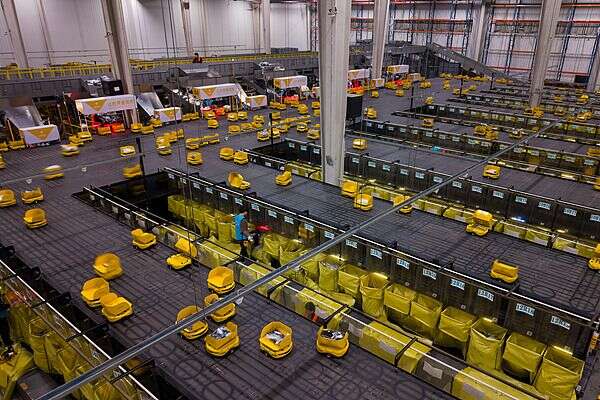 On the eve of China’s annual “Double 11” shopping festival, November 10, 2025, the East China logistics center of Kuaiyu in Deqing County, Huzhou City, Zhejiang Province, was at its busiest moment of the year. A total of 880 orange-yellow sorting robots — nicknamed “little yellow workers” — were swiftly shuttling across the two-story sorting platform, carrying packages of clothing in various colors and styles. Once sorted, the parcels were placed into their designated logistics bags, ready to be dispatched to destinations across the country. (Photo by VCG)