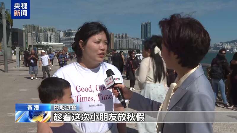 内地游客:我从成都来,趁着这次小朋友放秋假,我们就来香港这边看一看,然后我们要去看一下全运会,为中国健儿加油。