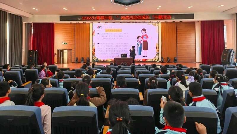 高检察官结合小学生生活实际,用生动的案例、幽默的语言,讲解了《中华人民共和国未成年人保护法》等与同学们息息相关的法律知识,同学们认真听讲,积极抢答,在轻松愉悦的氛围中学习法律知识。随后,团市委工作人员带来诚信教育分享,通过寓言故事和校园生活中的情境,鼓励大家从点滴小事做起,争当“诚信小标兵”。
