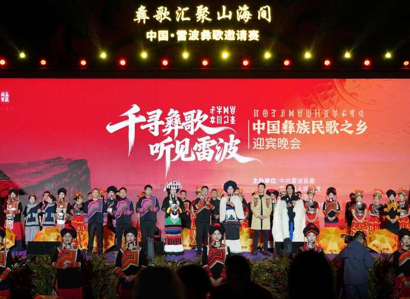 迎宾晚会分为《岁月的音符》《幸福的山寨》《伟大的时代》三大篇章,汇集非遗、彝族戏曲、阿都高腔、情歌对唱等多种艺术形式,打造“可听、可看、可感”的沉浸式文化体验。晚会联动雷波文旅资源,如龙头山大断崖、马湖风光、溪洛渡水电站等景观,通过民歌串联起文旅路线。