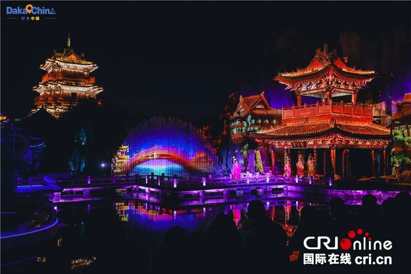 沉浸式夜间系列实景演出《南衙千秋月》让开封府化身流光溢彩的梦幻舞台。多幕运用现代声、光、电、水技术的演艺节目,为古老的故事注入了新的生命力。明镜湖畔,《一雅集·遇见苏轼》中的“水月云天舞”“千年之约喷泉秀”等段落将实景演出推向高潮,灯光、水幕、舞蹈交织出令人震撼的视听体验,深深触动了埃及网红努兰,她感慨道:“这里的演出非常震撼,中国无疑是一个文化强国,将历史故事以如此生动和高科技的方式呈现,体现了非凡的创造力与文化自信。”
