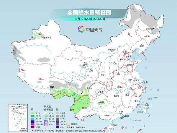 雨雪天气主要分布在西藏东部、四川西部、云南西部和北部、青海南部等地。