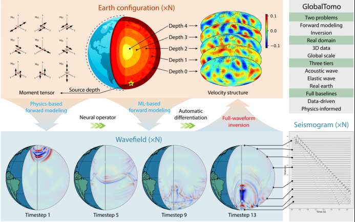 研究团队使用了一种特殊的模拟方法(AxiSEM3D:轴向谱元法),在计算机里模拟了无数次、不同样式的“虚拟地震波”,训练了一个既掌握物理规律又掌握大规模地震波传播模拟数据的AI。并利用“物理感知深度学习神经算子”技术,把地震波传播过程中必须遵守的物理定律(如弹性波动方程)直接编入了AI的学习程序。
