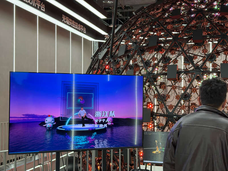 现场技术讲解员说,这项创新技术解决了实拍难题,将内容创作从传统工业流水线中解放出来,实现虚拟与现实的深度融合。