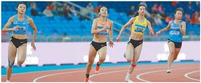 浙江队选手陈妤颉(左二)在十五运会田径项目女子200米预赛中。