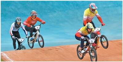 运动员在十五运会竞速小轮车比赛中。