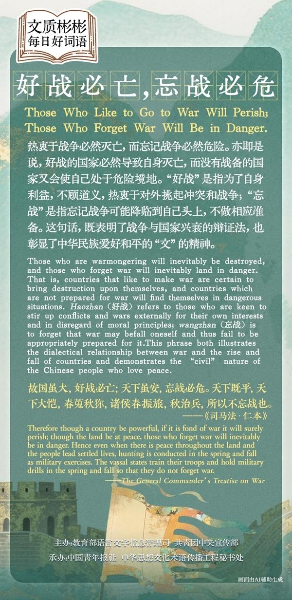 文质彬彬·每日好词语|好战必亡,忘战必危
