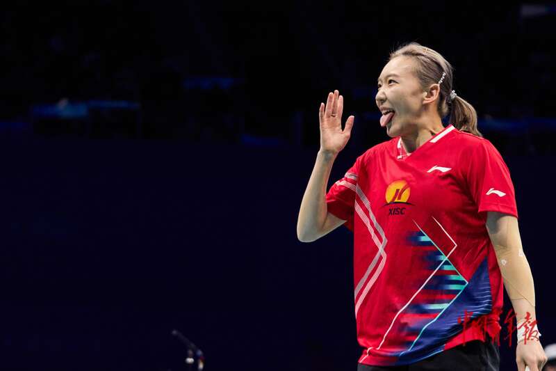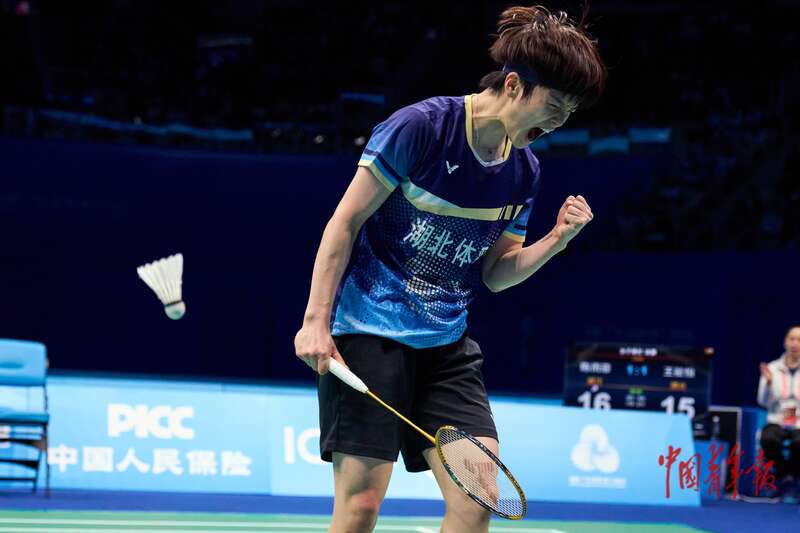 11月20日,广东深圳,深圳市体育中心体育馆,全运会羽毛球项目成年组女子单打决赛,湖北队选手王祉怡在反超比分后呐喊。中青报·中青网记者 田嘉硕/摄