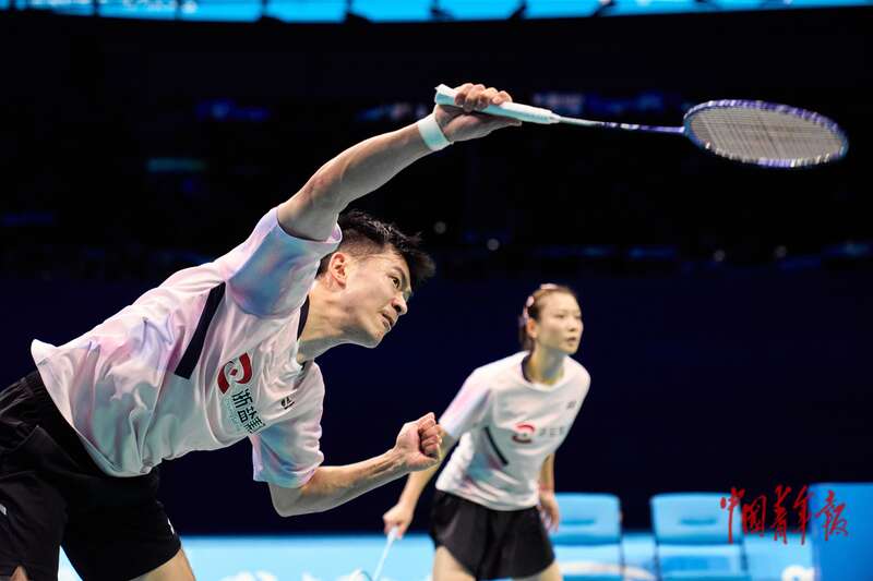 11月20日,广东深圳,深圳市体育中心体育馆,全运会羽毛球项目成年组混合双打决赛,混双名将“雅思”组合郑思维(右)、黄雅琼在比赛中。中青报·中青网记者 田嘉硕/摄