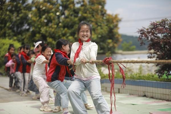 贵州省黔西市五里布依族苗族乡箐头教学点的小学生在课间拔河。视觉中国供图