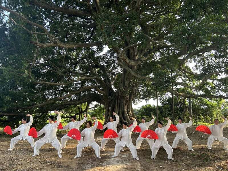 2024年12月,市民在广东揭阳东港镇练习太极扇。揭阳市委宣传部供图