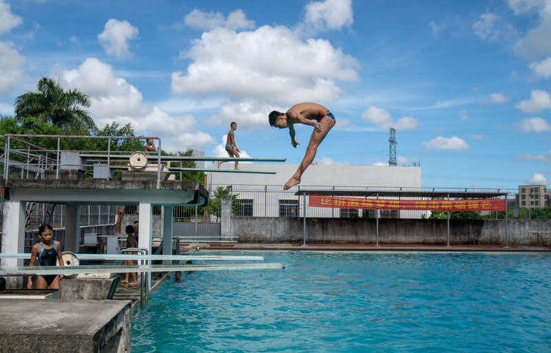 2021年9月2日,湛江市体校的跳水学员在进行训练。新华社记者 周自扬 摄