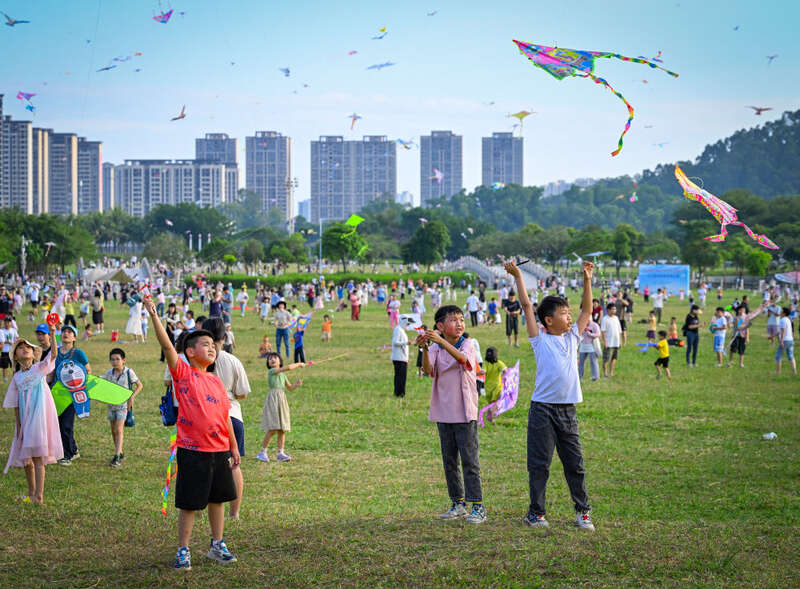 2024年10月13日,市民在广东阳江南国风筝场放飞风筝。阳江市委宣传部供图