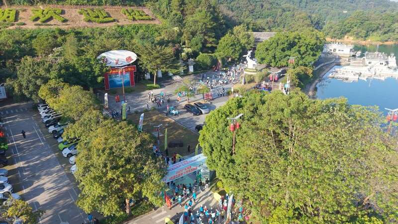 2025年11月16日,市民在广东河源“穿越万绿湖”大型徒步活动中。河源市委宣传部供图
