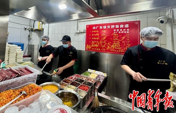 王鑫林口中的“老板”是“郭林家常菜团结湖店”的负责人王援军。王援军介绍,企业将原来的粗加工间改造成档口,除了提供设备,还增派人手协助炒饭。