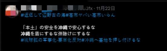 日本网友热评“不需要高市早苗”“勿将冲绳当作盾牌”,严正拒绝自己的家园成为潜在冲突的“盾牌”与“炮灰”,并强烈谴责日本政府“持续将美军基地强加于冲绳的行径”。