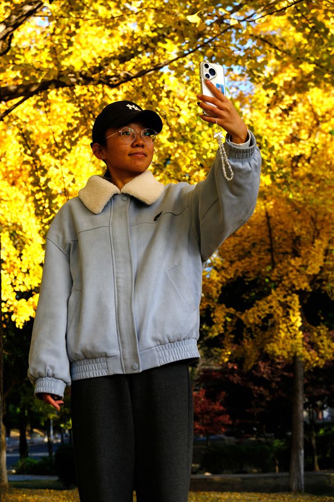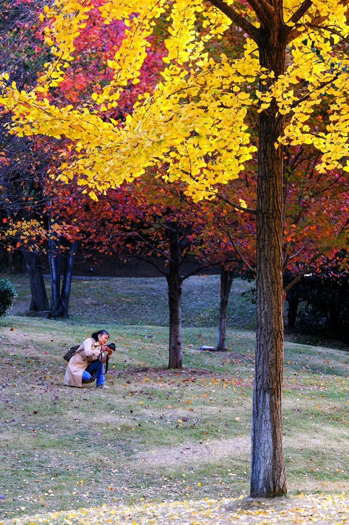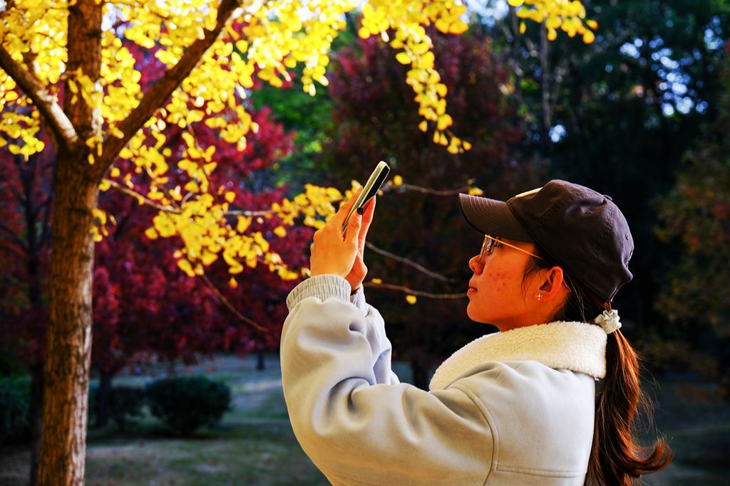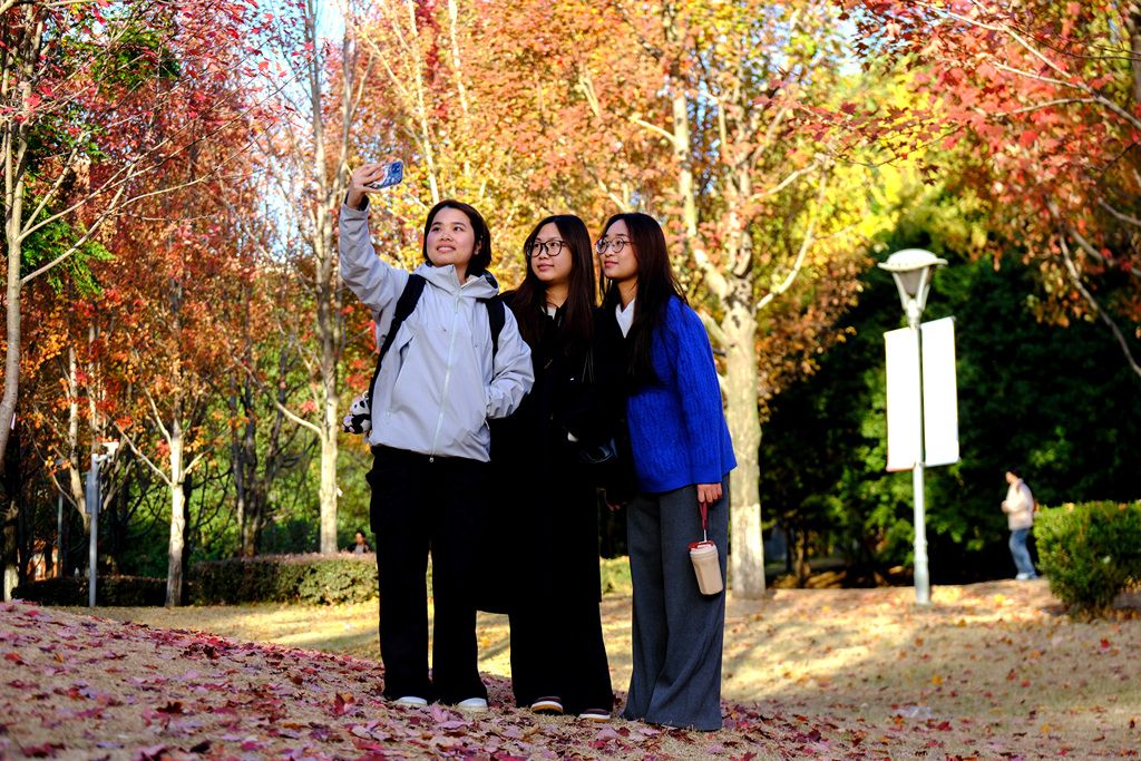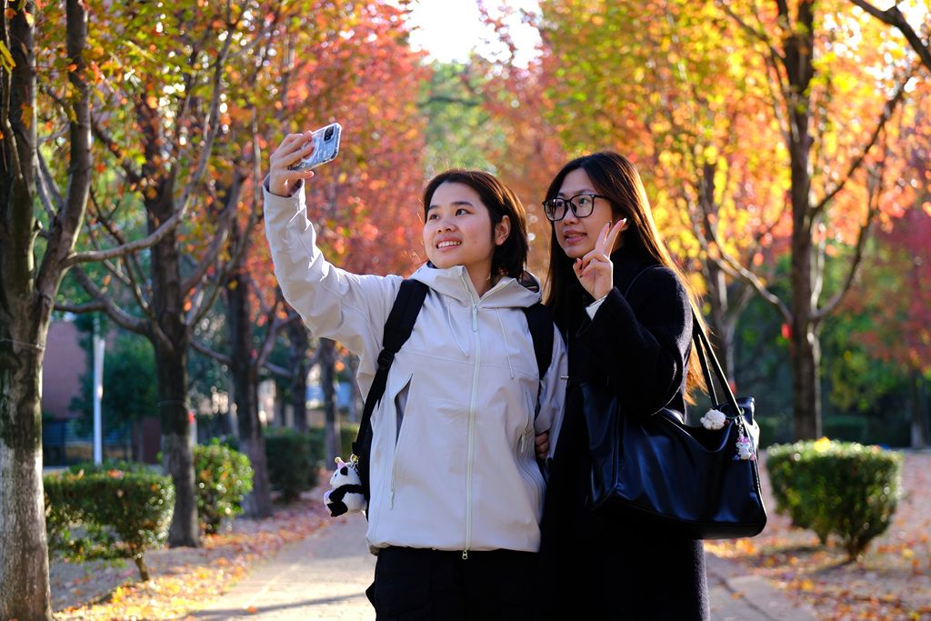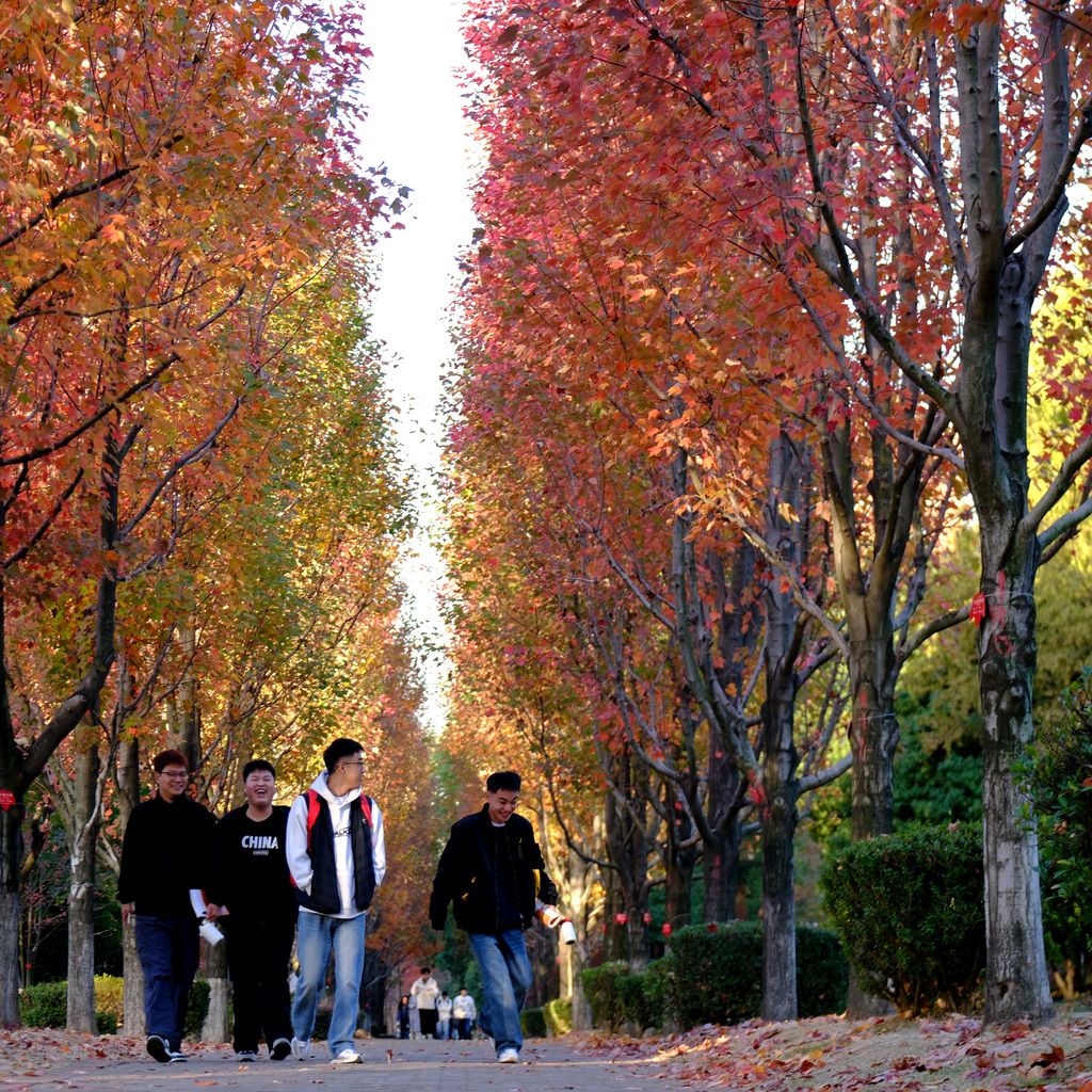 2025年11月25日,长沙,湖南农业大学的彩叶斑斓,吸引师生前来欣赏美景。