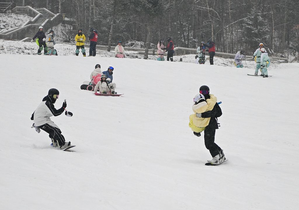 2025年11月27日,吉林省白山市,游客在长白山一雪场滑雪,体验冰雪运动乐趣。