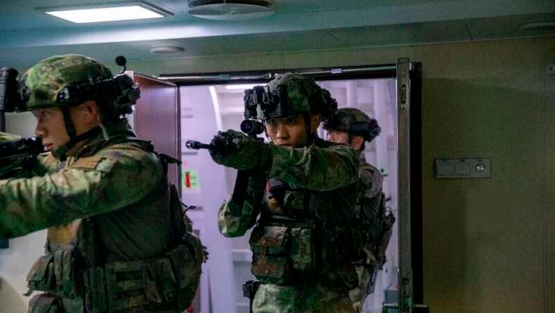 海军第48批护航编队在亚丁湾开展反恐反海盗演练