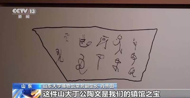 山东大学博物馆常务副馆长 肖贵田:这件山大丁公陶文是我们的镇馆之宝,它是在山东邹平丁公遗址发现的,当时引起了非常大的轰动。因为这应该是中国最早发现的成篇文字,还比甲骨文要早800年。所以说当时引起了学术界很大的轰动,引起了一轮中国文字起源的大讨论。