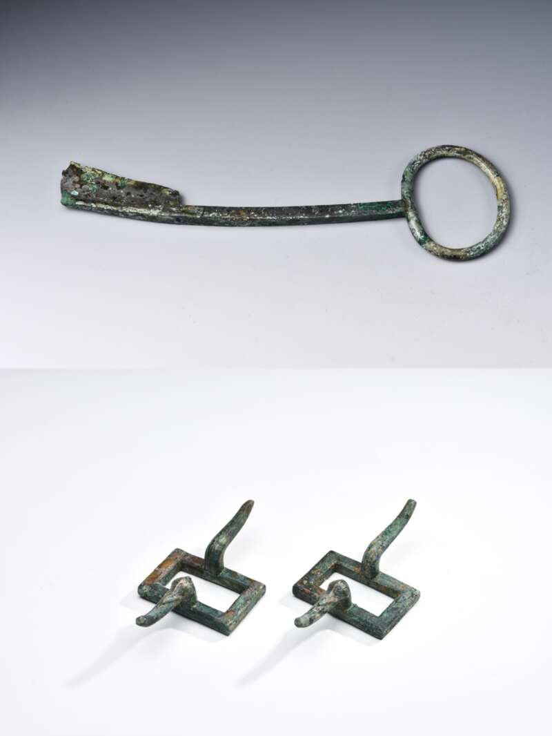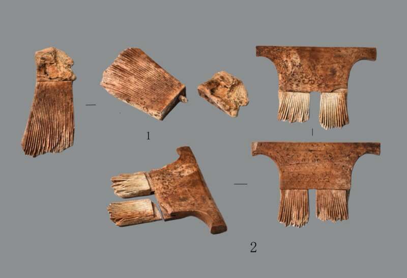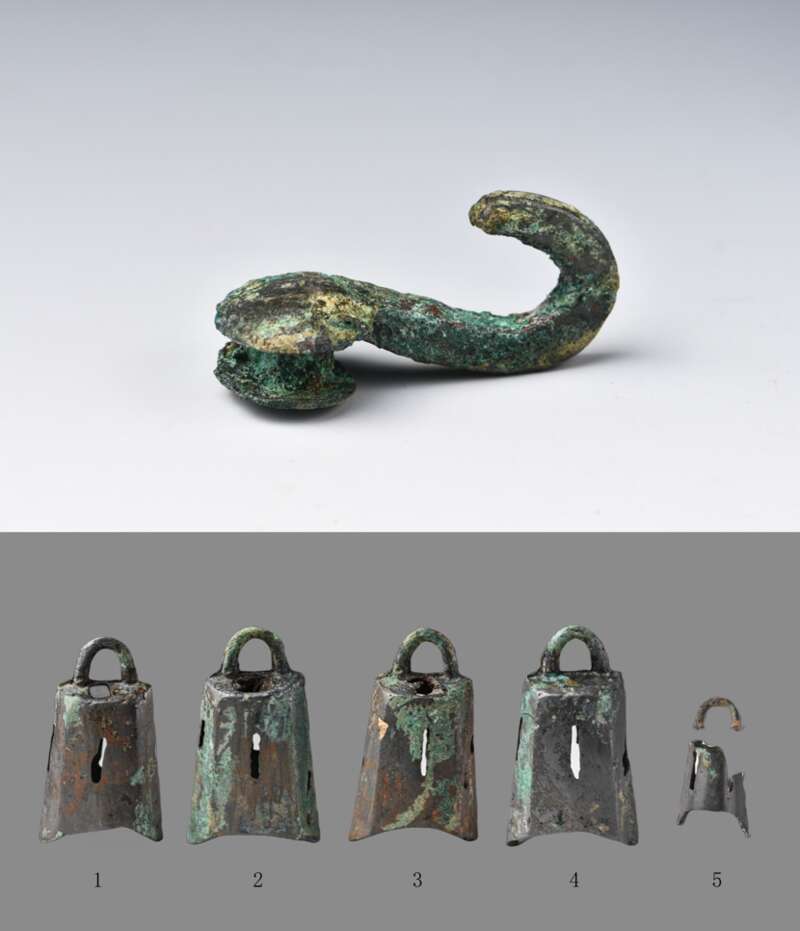 第二组墓葬中,M6、M7两座中型墓规模相当、距离相近、成对分布,推测为夫妻异穴合葬墓。M6随葬兵器,应为男性;M7随葬骨梳,应为女性。尽管遭严重盗扰,M6墓葬中仍出土包括铜鼎、铜剑、成套石编磬以及大量铜车马器构件和玉器、骨贝等262件器物。