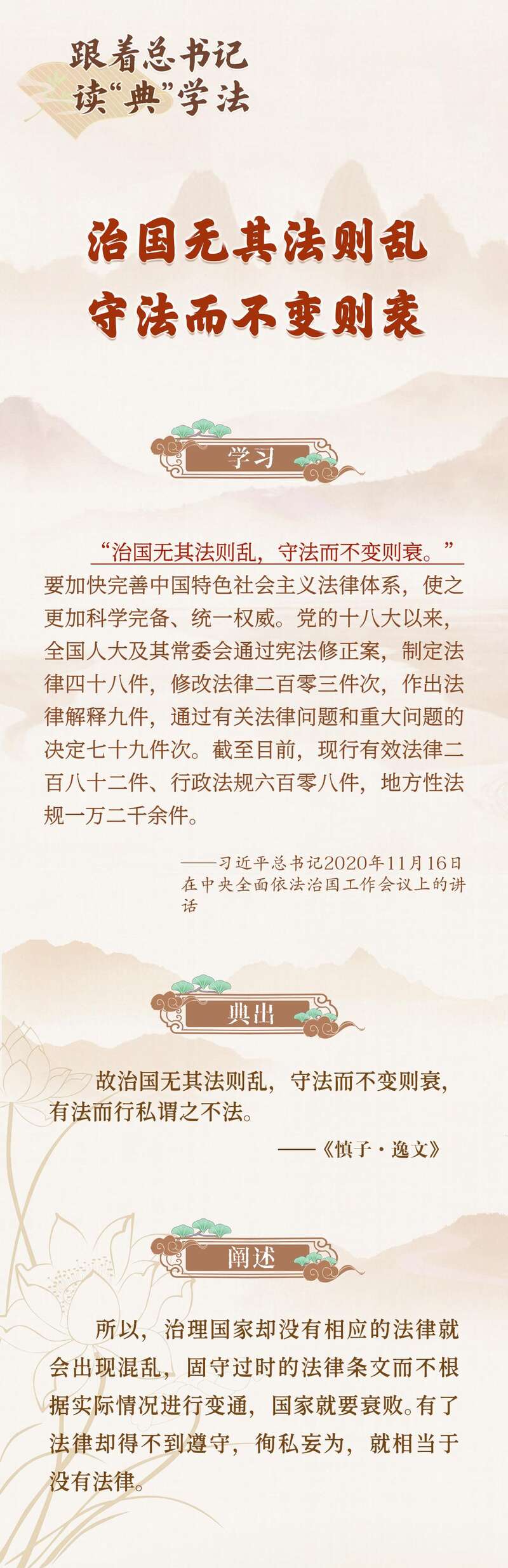“源浚者流长,根深者叶茂。”中华优秀传统法律文化,承载着千年治国理政的智慧结晶,为当代中国法治建设注入深厚的文化底蕴。习近平总书记在多次讲话中运用法治典故析法明理,推动中华优秀传统法律文化实现创造性转化、创新性发展,使其由历史典籍中的法理智慧,发展成顺应时代所需的治国理念。