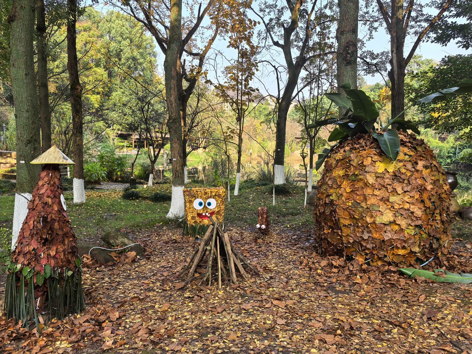 学生们以落叶制作了30余件艺术作品,为冬日校园添上一抹亮色。