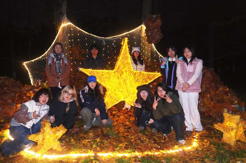 学生们与“鎏金拾光”第三届落叶艺术节作品合影。四川美术学院团委供图