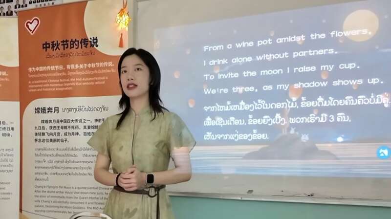 宋璐杏的课堂从不止于书本,他巧妙地将课堂打造成语言教学、文化传播与友谊搭建的“三重阵地”,让每一堂课都成为连接中老的小小桥梁。中国传统节日、文化故事和中老铁路等务实合作的鲜活案例都成了他手中的“特色教材”。老挝学生在学好语言的同时,也读懂了真实立体的中国。