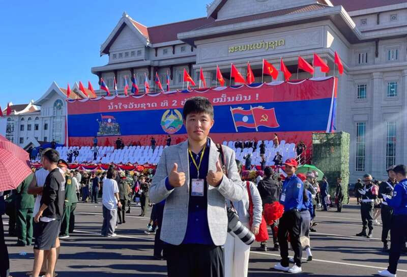 今年是老挝人民民主共和国成立50周年,老挝人民革命青年团在庆祝活动中承担了重要任务。作为宣传人员,陈嘉明全程参与其中。他每天早出晚归,穿梭于舞台、会场与群众方阵之间,敏锐捕捉每一个动人瞬间。