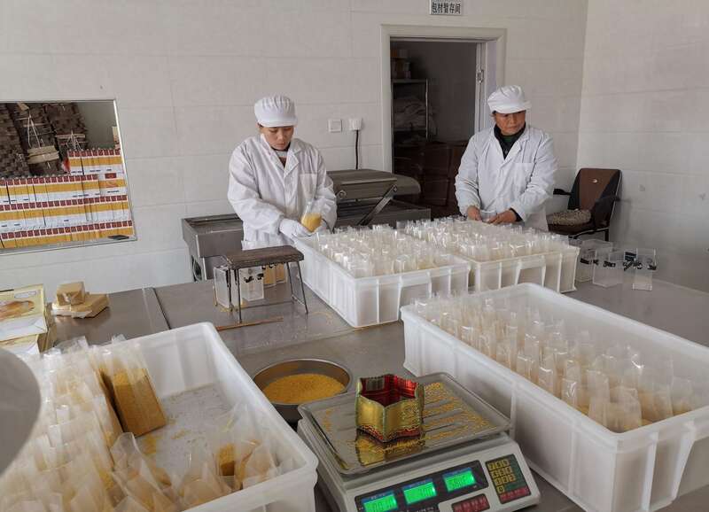 郎栅子村素有谷子种植传统,2019年“黍道种植专业合作社”成立,推动杂粮种植标准化。可刚起步就遇上了难题:小米卖不上价。队长张承光通过对接学校工会、食堂,将小米端上教师餐桌;同时请专业教师教村民拍视频、开直播。张志奎从面对镜头说不出话,到能熟练介绍小米的营养与口感,一天就能卖出500斤,“直播成了‘新农活’。”2020年,扶贫车间落成,将本地优质小米进行深加工,封装成精致伴手礼,价格直接翻倍。