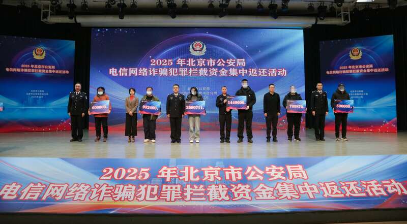 中国青年报客户端讯(中青报·中青网记者 胡宁)12月9日,北京市公安局在丰台区玉泉营举办2025年电信网络诈骗犯罪拦截资金集中返还活动。据了解,今年以来,北京警方累计向被骗群众返还涉诈资金8亿余元。