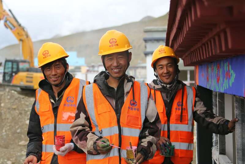 2025年8月10日,技术人员在中国中铁定日县曲洛乡措昂村民房恢复重建项目施工现场商讨方案。