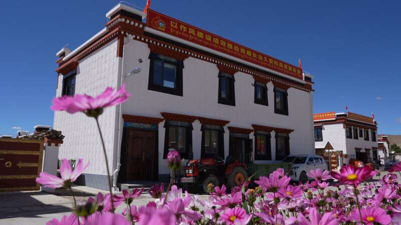 这是2025年8月14日在定日县曲洛乡措昂村拍摄的恢复重建房屋。
