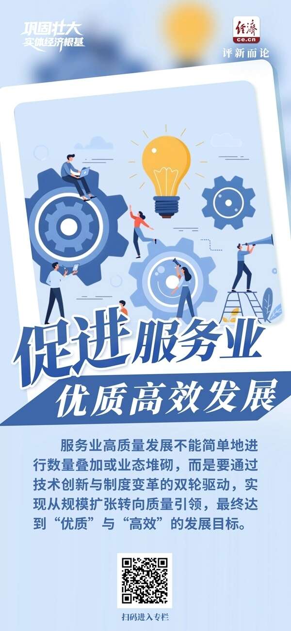 促进服务业优质高效发展,是筑牢现代化产业体系“四梁八柱”的关键一环,也是不断塑造发展新优势、满足人民新期待的重要过程。方向既定,实干为要,紧扣“优质”和“高效”,持续锻造强大的“服务引擎”,现代化产业体系基础将更加坚实,中国经济高质量发展的动能也将更加强劲。(文/臧梦雅 图/彭章霞)