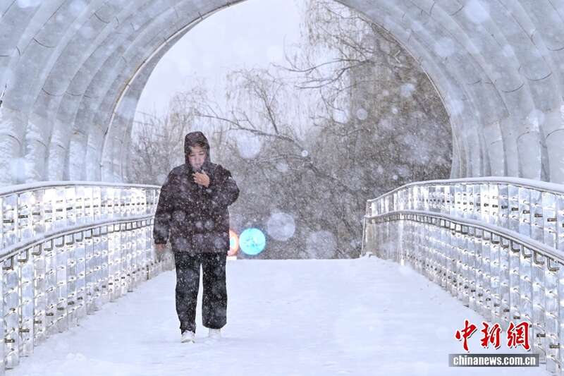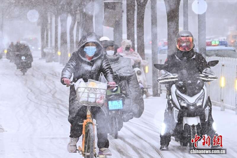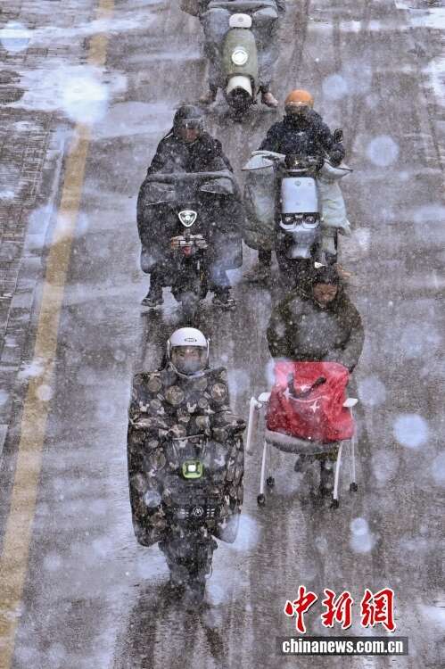 12月12日,河北石家庄,市民雪中出行。当日,该省迎来降雪降温天气,大部地区小雪到中雪,局地有大雪,个别地点有暴雪,多地气温大幅下降。