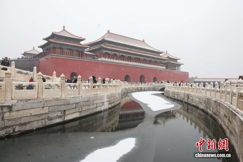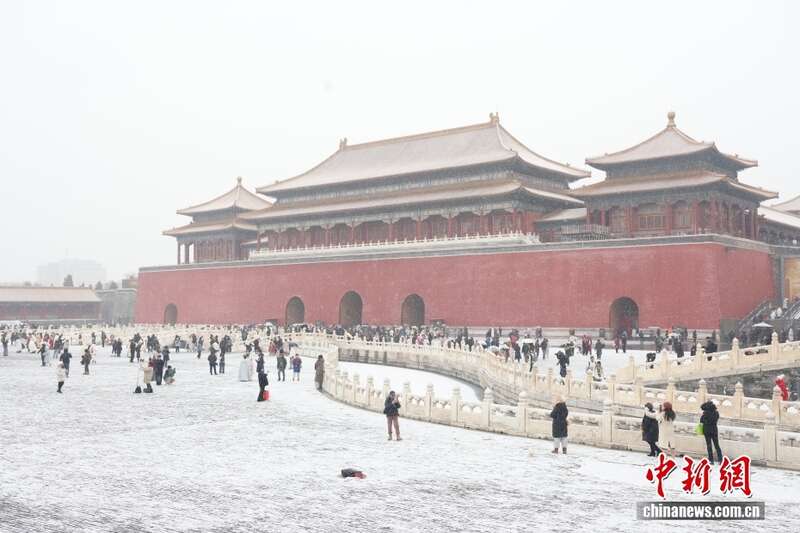 12月12日,北京市迎来2025年入冬以来首场降雪,雪中的故宫博物院银装素裹。