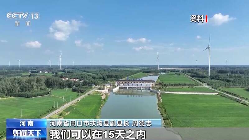 河南省周口市扶沟县副县长 周德志:发生旱情的时候,我们可以在15天之内,把全县的干支渠蓄满水,最高时候可达到7000万立方米,有效缓解旱情。汛情的时候,我们两天之内可以把田里的水全部排空,真正能做到旱能浇,涝能排。