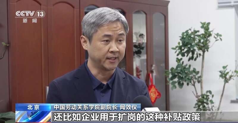 中国劳动关系学院副院长 闻效仪:比如稳岗扩岗的金融支持政策、社会保险的返还补贴、阶段性的缓缴政策、还比如我们企业用于扩岗的补贴政策,还有职工在岗培训和技能提升的政策,通过这些政策来引导企业来稳定岗位,扩大岗位,提升岗位的就业质量。