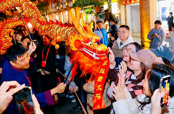2025年12月14日晚,福建泉州古街区,参与泉州国际木偶展演的中外木偶表演团队在此巡游,与市民、游客互动。 中新社记者 王东明 摄